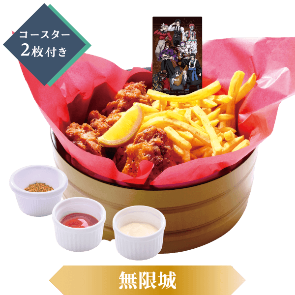 After 17:00, the menu will switch to a demon theme. Items include Muzan Kibutsuji’s transforming quest drink which comes with a special syrup that changes the drink’s taste and appearance, Upper Moon One Kokushibo’s two-layered cola, Upper Rank Three Akaza’s White Water, Kaigaku’s blue lemon squash and more. Meals include Muzan’s super spicy mapo tofu, Kokushibo’s black chicken nanban, Douma’s vongole pasta, Akaza’s napolitan pasta and the Infinity Castle endless chicken and fries.