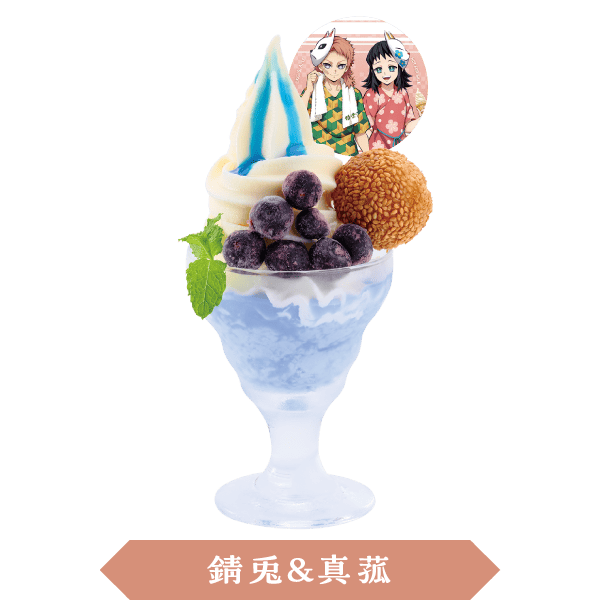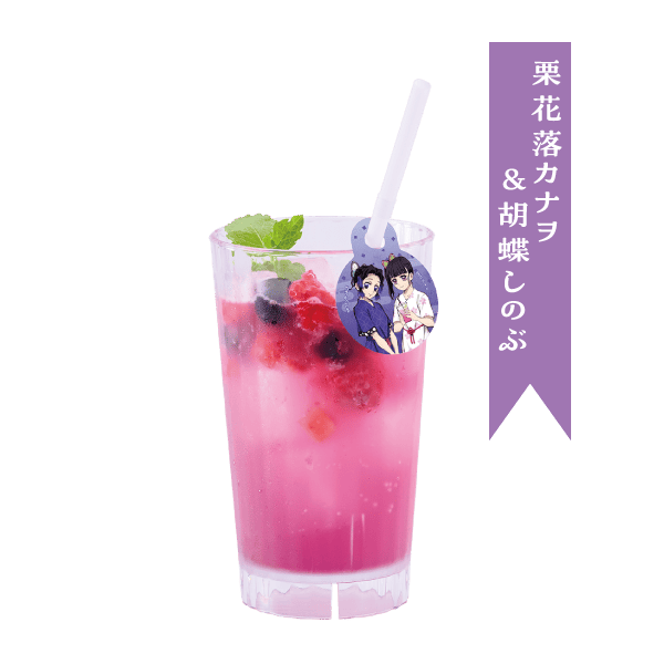 Drinks include Tanjiro’s chocolate mint White Water, Inosuke’s blue banana milk, Kanao and Shinobu’s flower syrup soda and more.