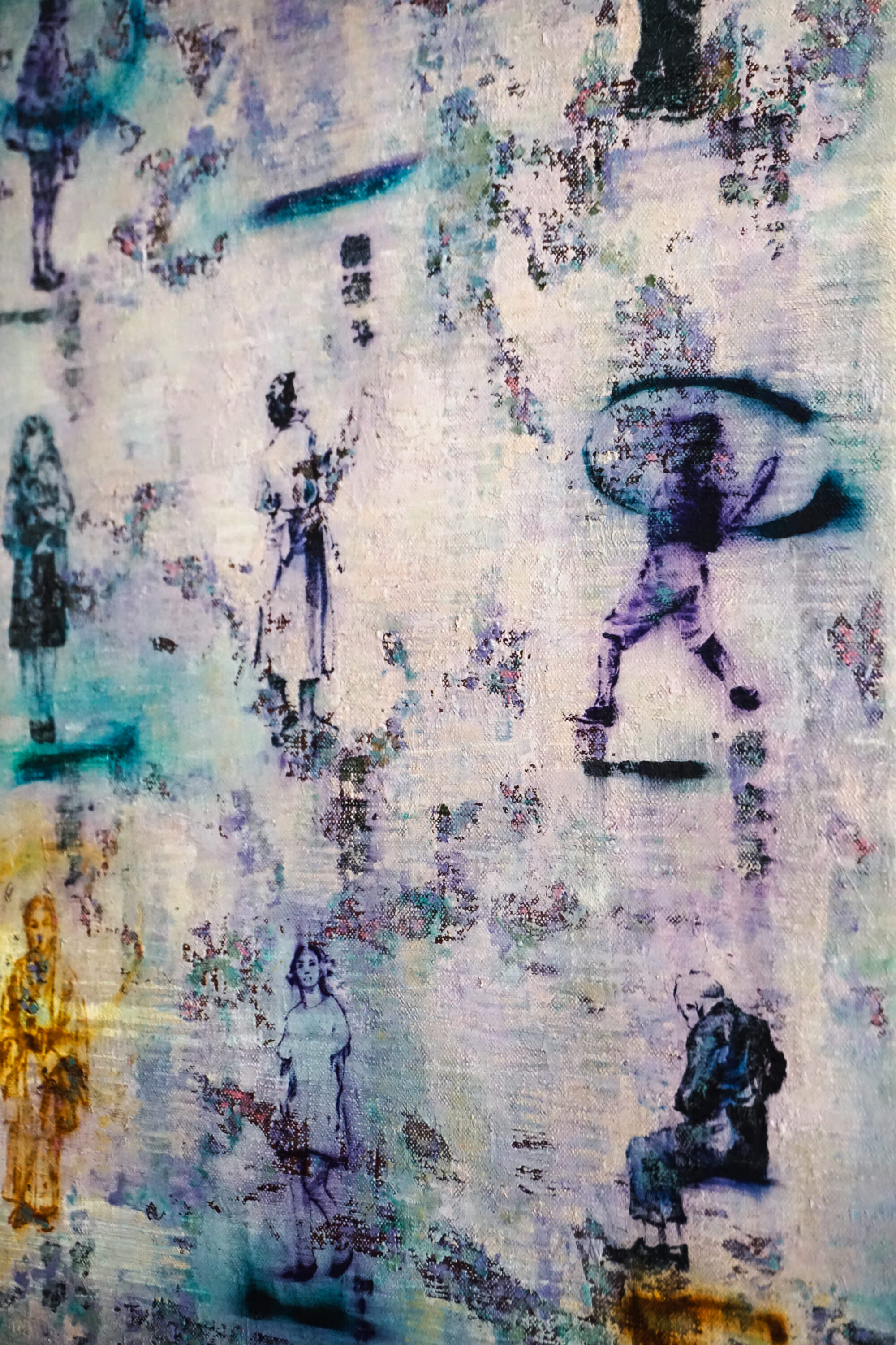 After four years of making purely abstract painting, Swann is making a return to working with the human figure. The concept of “Infinite City” explores life in the city through images of contemporary life, showing people from old photographs and figures from museum collections as if they all exist in the same plane. Swann’s paintings attempt to display everyone who lives or has lived in the city. The exhibition comprises of oil paint and water-based-pigment paintings, all created in the last six months.