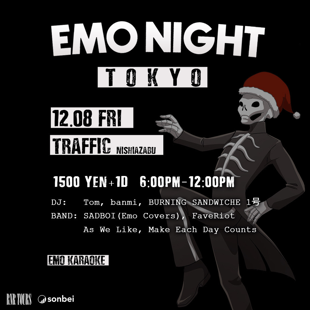 The saddest party in Tokyo, Emo Night Tokyo, returns this December for a final nostalgia-filled bash to end the year. This is a place for like-minded people to get together to a soundtrack of emo, alternative, rock and metal music.