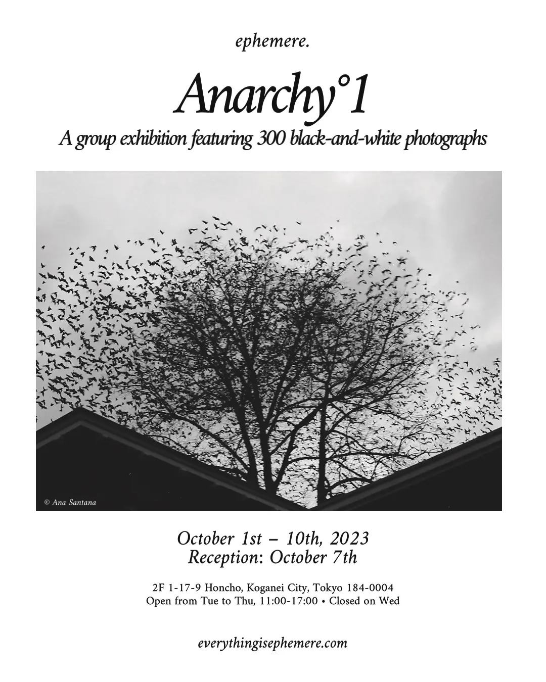 “Anarchy°1” is a threefold project that celebrates the universal allure of monochrome photography through a group exhibition (October, 2023), a photobook (November, 2023), and a special exhibition featuring the awardees (December, 2023).
