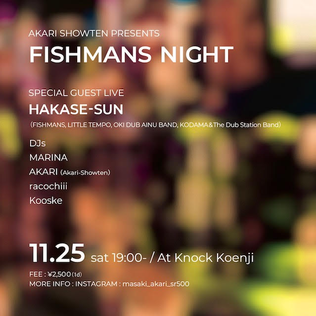 This November, Akari Showten presents Fishmans Night, with musical performances from special guest Hakase-Sun, Little Tempo, and of course, Fishmans.