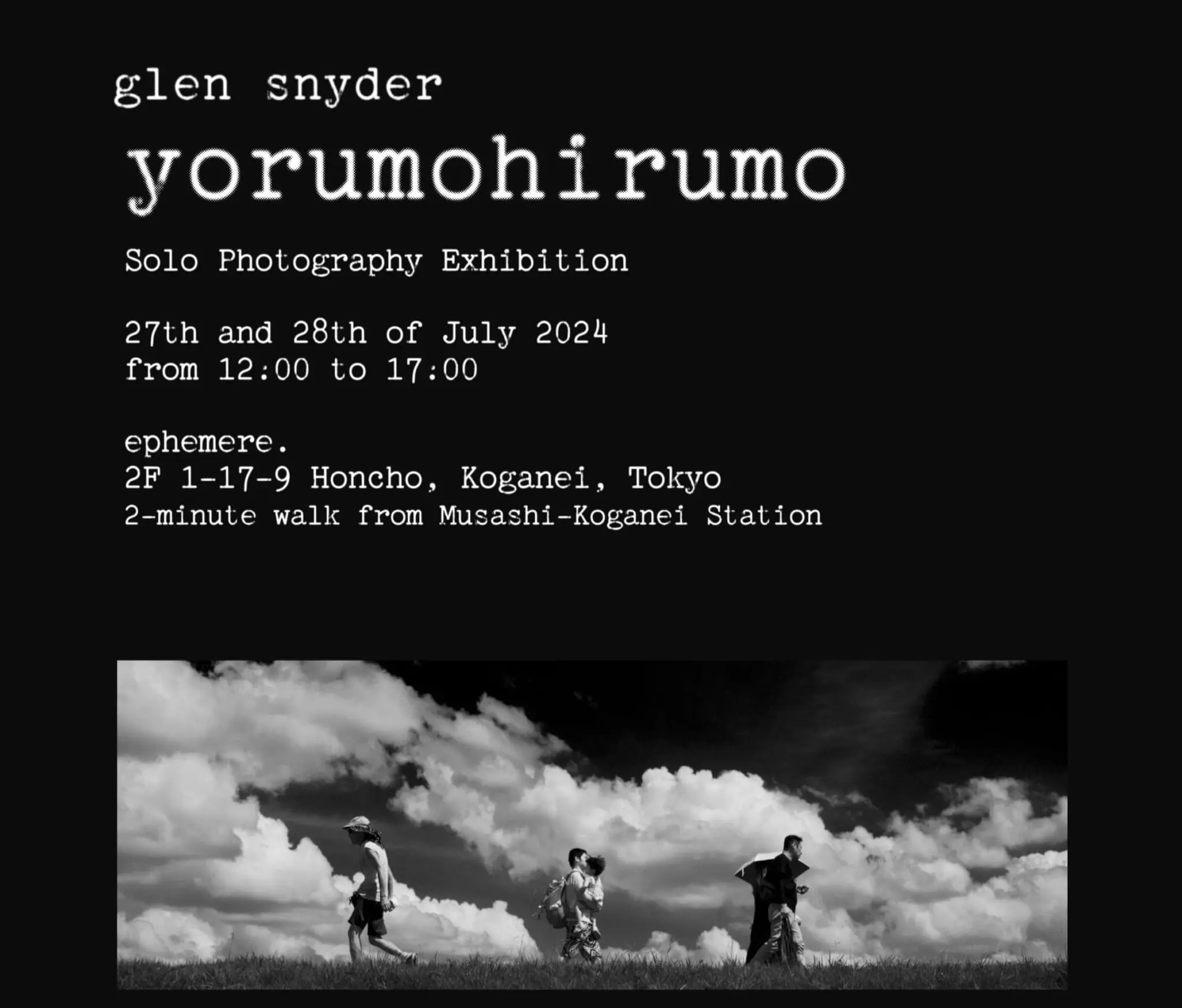 Inspired by Glen Snyder’s daily work commute, “Yorumo Hirumo” offers a unique view of life along the Tama River, which separates Kanagawa from the urban metropolis of Tokyo. This marks Snyder’s first gallery showing at ephemere. and showcases a stunning blend of digital and traditional film photography.