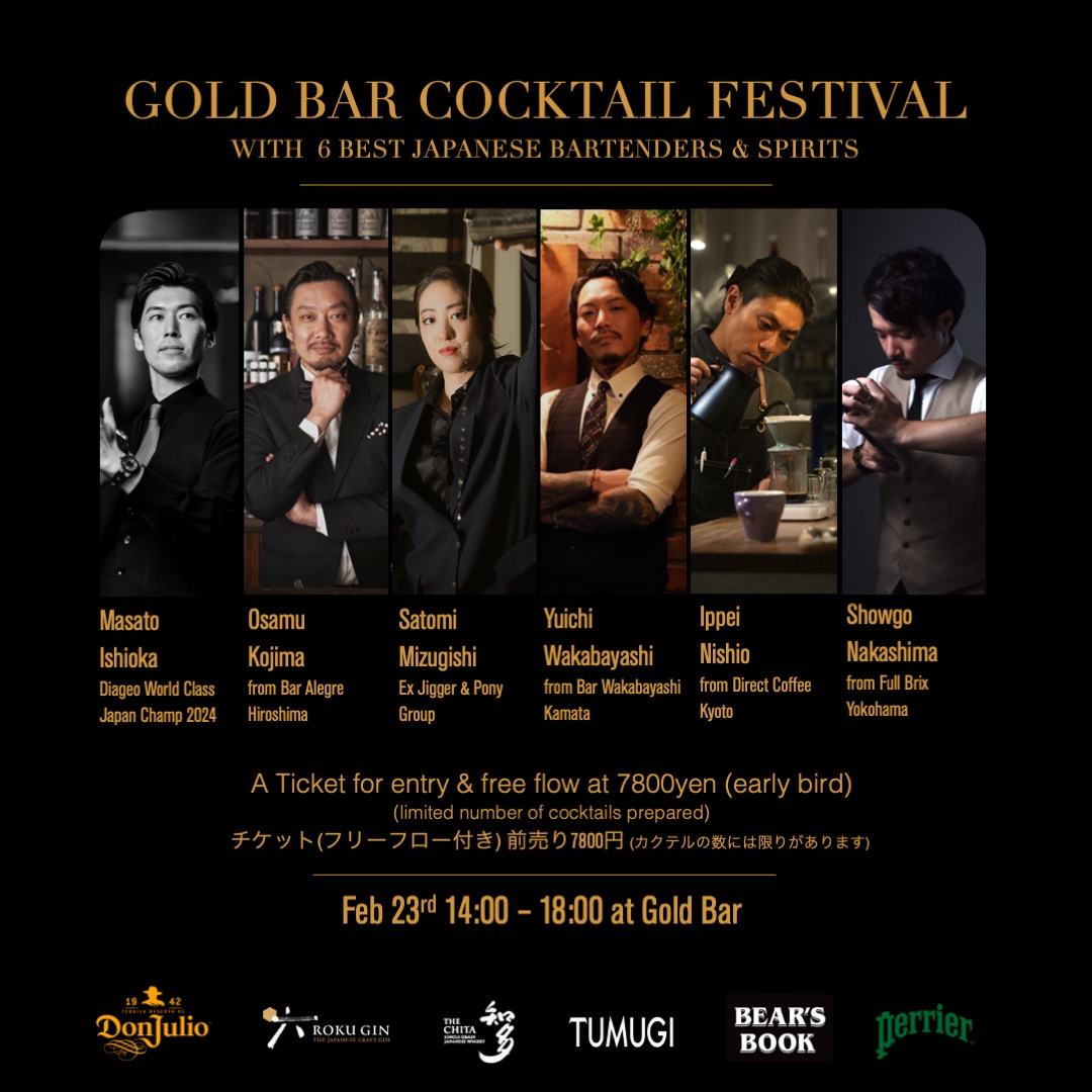The Gold Bar at Edition at the Tokyo Edition, Toranomon, is hosting the Gold Bar Cocktail Festival on Sunday, February 23, 2025. It’s an event during which guests can enjoy cocktails from Japan’s top bartenders all in one place. There will be six bartenders in total, who will create 12 types of drinks based on domestic spirits and tequila.