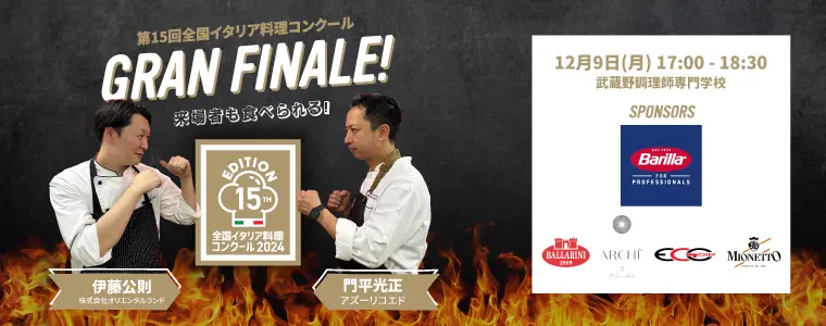 Join the culinary battle of the year at the Gran Concorso di Cucina 2024 Finals! Held at the Musashino Culinary Institute on Monday, December 9, this delicious event pits two top chefs, Kiminori Ito and Mitsumasa Kadohira, against each other in a thrilling cook-off. Guests will savor their creations, vote for their favorite dish, and engage with esteemed jurors in fun quizzes about the beloved Italian classic, lasagna. With expert judges like Emanuela Orighi and Andrea Tranchero in attendance, it’s a treat for food lovers. Entry includes tasting privileges: Don’t miss this chance to indulge and judge like a pro!