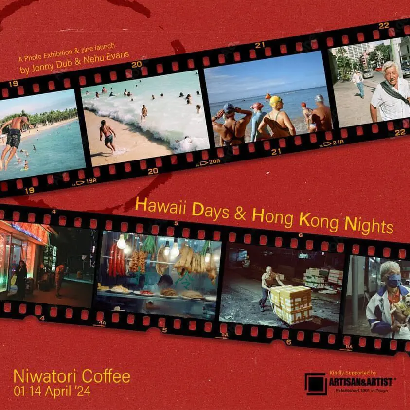 “Hawaii Days & Hong Kong Nights” is a joint show between Hawaii native photographer Nehu Evans and local photographer Jonny Dub. The pair will be presenting a selection of new works in the form of prints and a brand new full colour zine, featuring 50 pages of stunning photos from these two contrasting locations, all of which will be available to view & purchase at the show.