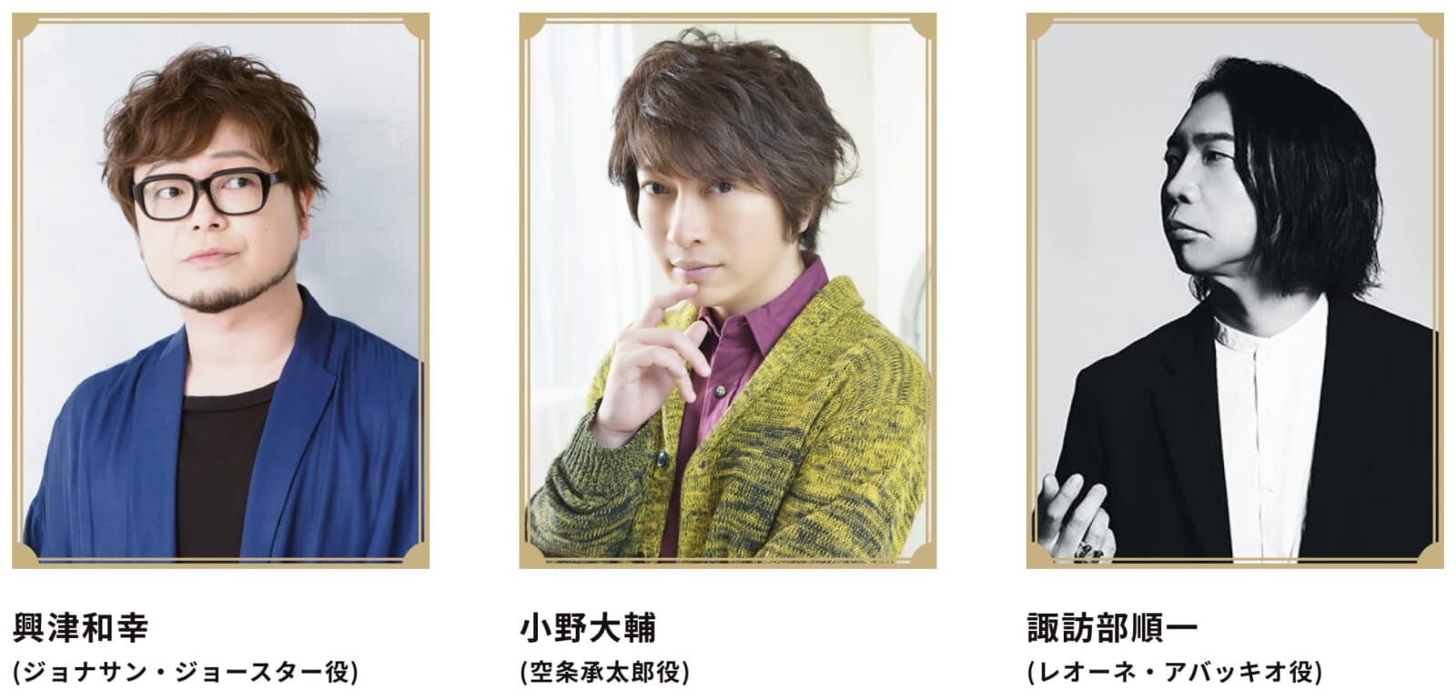 Fans can also look forward to special video appearances from Tomokazu Sugita (Joseph Joestar), Yuki Ono (Josuke Higashikata), and Kensho Ono (Giorno Giovanna), representing protagonists from different parts of the series.
