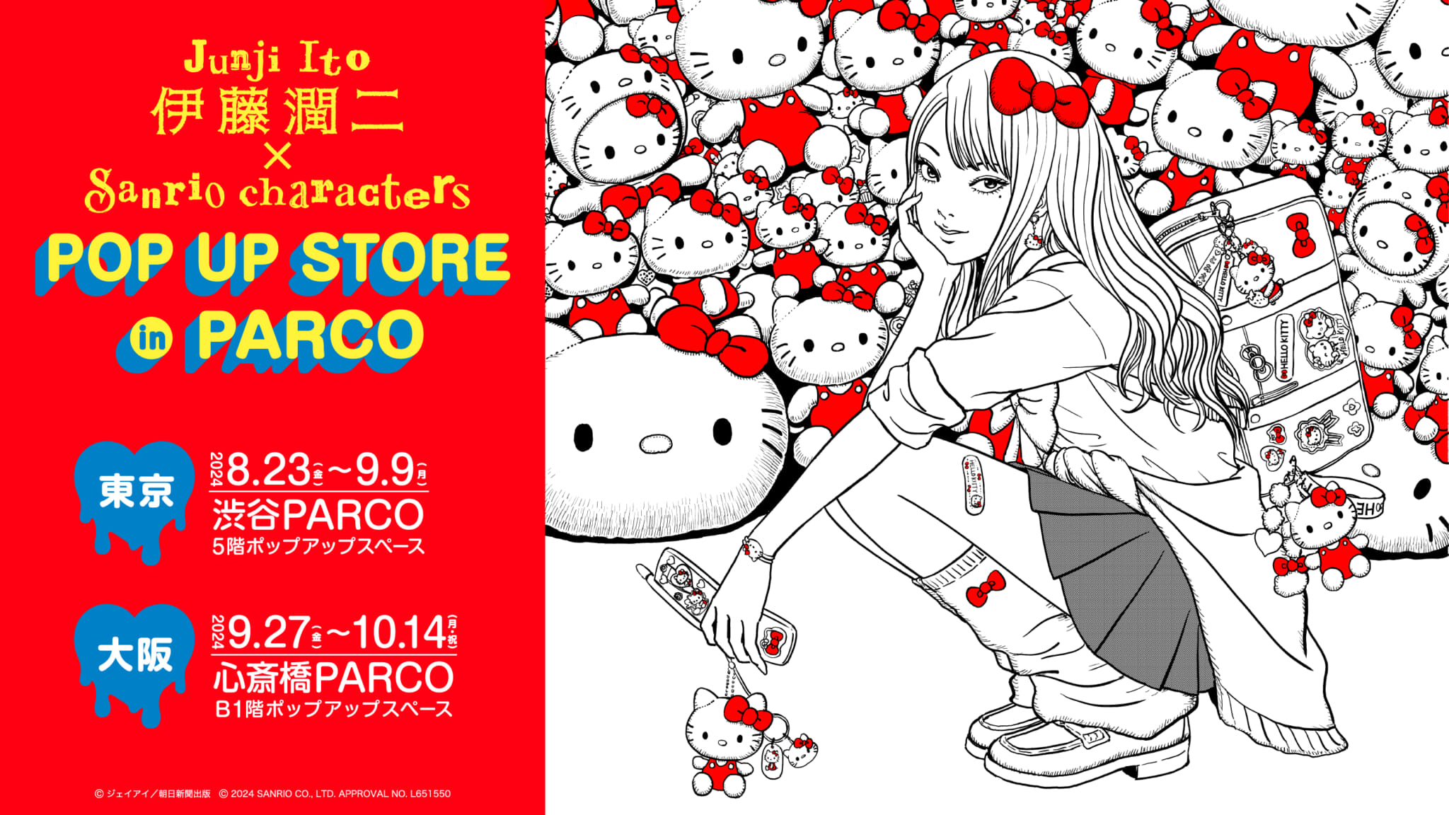 This has to be one of the most iconic yet unexpected pairings yet. For this limited time pop-up, the world of Junji Ito will collide with various characters from Sanrio, bringing to life a unique look at their characters juxtaposed through art. From Tomie dressed in gyaru-style Hello Kitty to the Intersection Bishounen carrying Sanrio character balloons, this is art that intrigues and also frightens. Best of all, you can take most of this home in the form of t-shirts, coasters, stickers and more.