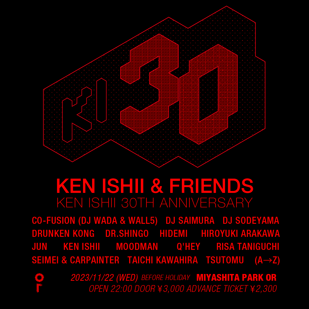 Head down to Or, Miyashita Park this November to celebrate the 30th anniversary of Ken Ishii, often called Japan’s world-class techno god. With support from the likes of Co-Fusion (DJ Wada & Wall5), Drunken Kong and Q’Hey in the heart of Shibuya, this promises to be a night to remember.
