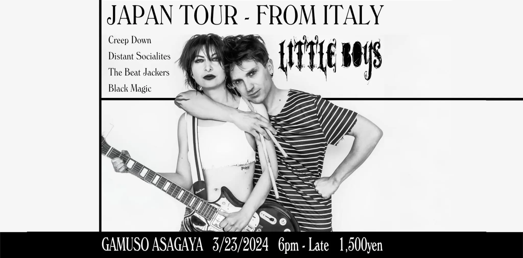 Gamuso Asagaya, a renowned live music bar in Tokyo, hosts an electrifying spectrum of talented bands from various rock genres. The eclectic lineup for the show on March 23 includes Black Magic, Distant Socialites, The Beat Jackers, Creep Down and Little Boys who are coming all the way from Italy.