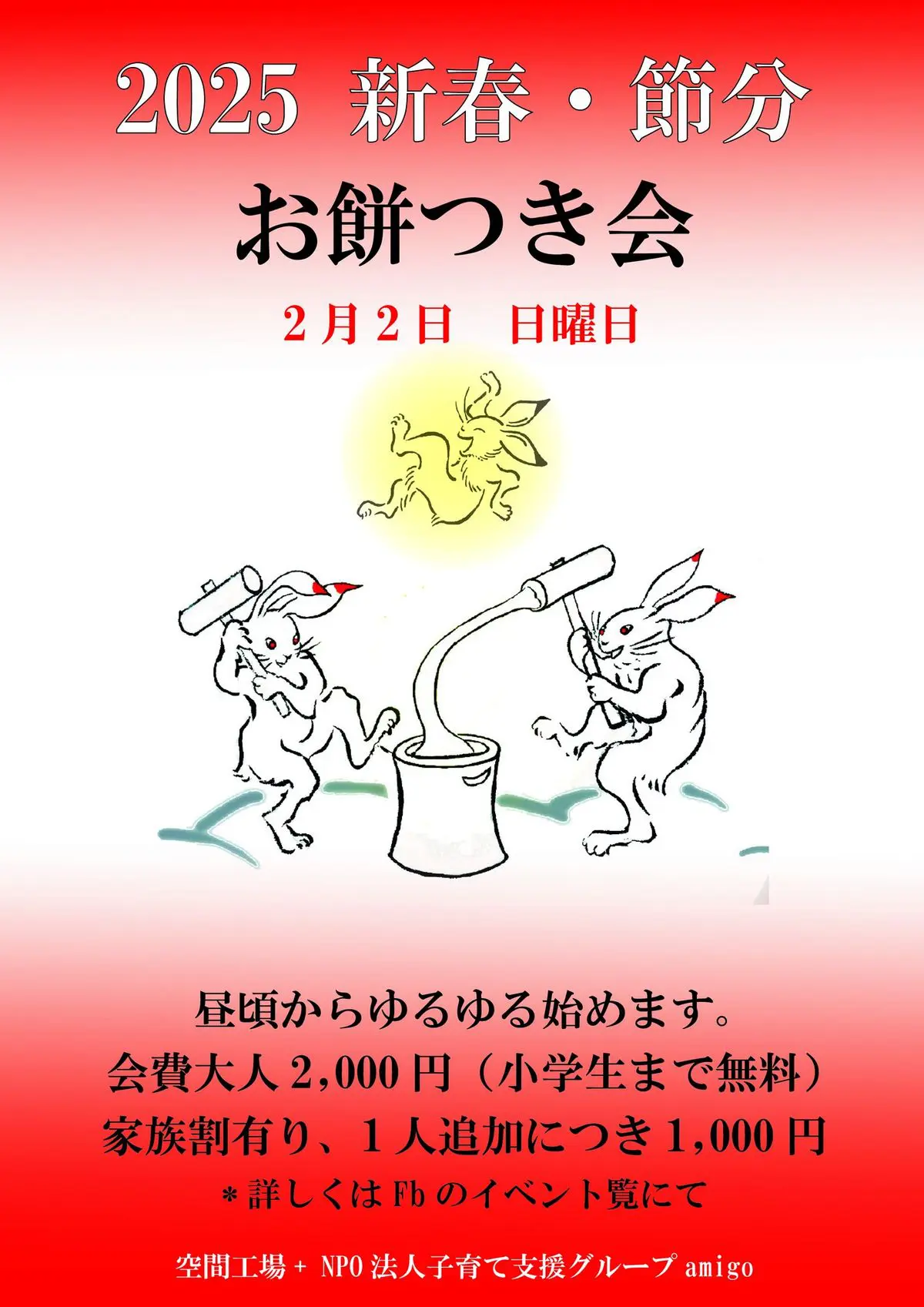 This NPO charity-run mochitsuki festival combines two events in one. Once you’ve pounded the rice to make mochi, it’s free mochi for all, with a range of toppings and ways to eat. There will also soft drinks and harder stuff available at one-by-one or all-you-can-drink.