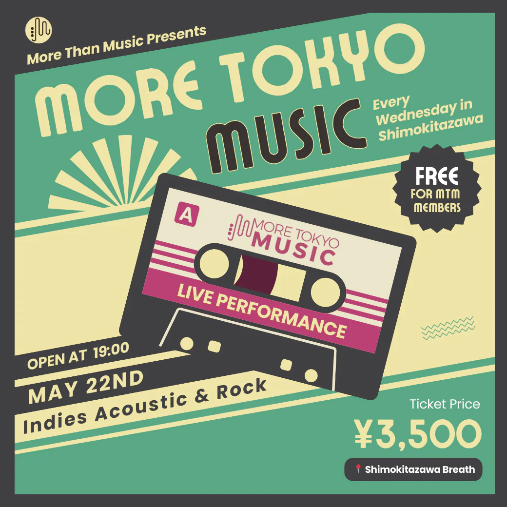In the heart of Shimokitazawa, the hub of Tokyo’s live music, More Than Music are hosting a regular “More Tokyo Music” event. Immerse yourself in a vibrant world of music every Wednesday from 7pm to 11pm. With carefully curated live performances, each week offers a unique sonic journey that spans genres and captivates all tastes.