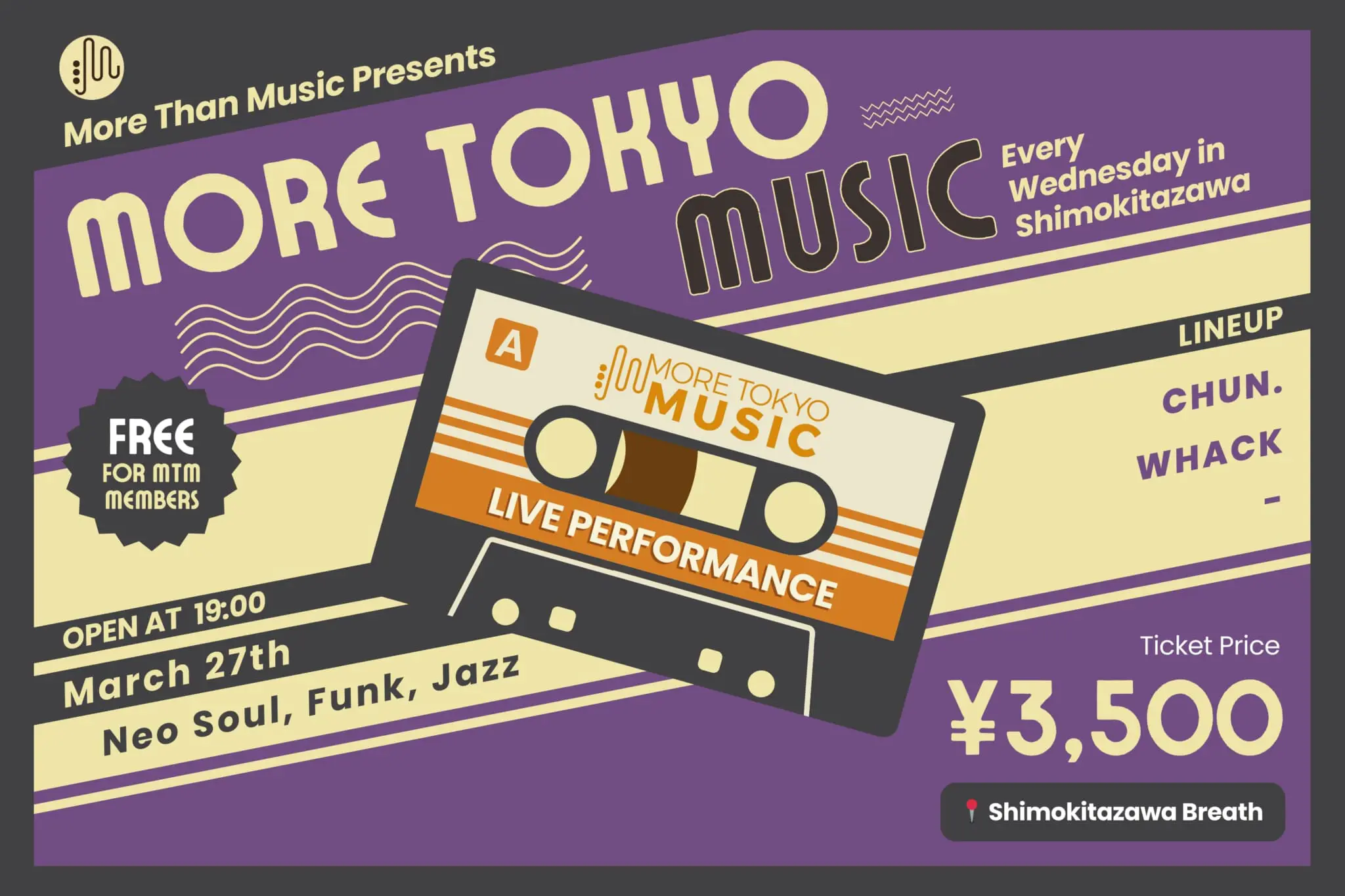 In the heart of Shimokitazawa, the hub of Tokyo’s live music, More Than Music are hosting a regular “More Tokyo Music” event. Immerse yourself in a vibrant world of music every Wednesday from 7pm to 11pm. With carefully curated live performances, each week offers a unique sonic journey that spans genres and captivates all tastes.