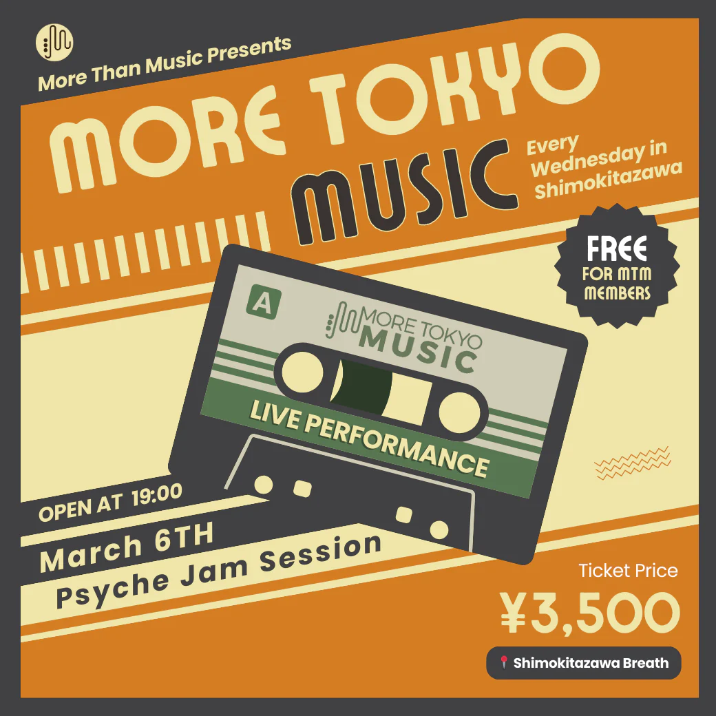 In the heart of Shimokitazawa, the hub of Tokyo’s live music, More Than Music are hosting a regular “More Tokyo Music” event. Immerse yourself in a vibrant world of music every Wednesday from 7pm to 11pm. With carefully curated live performances, each week offers a unique sonic journey that spans genres and captivates all tastes.