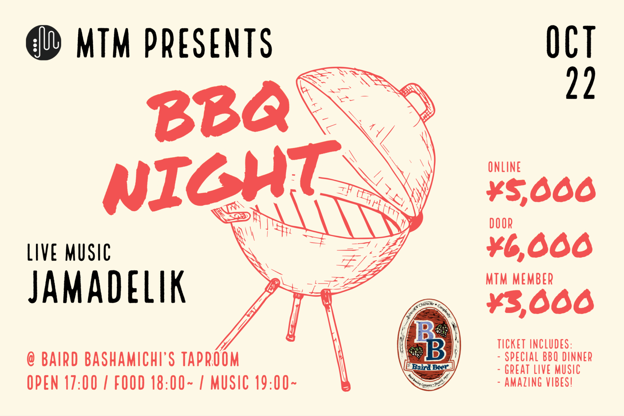 Baird Beer taproom does not only serve delicious craft beer but also some authentic American style BBQ. MTM will put on a show with the groovy sounds of Jamadelik, a new band formed by three incredible musicians.