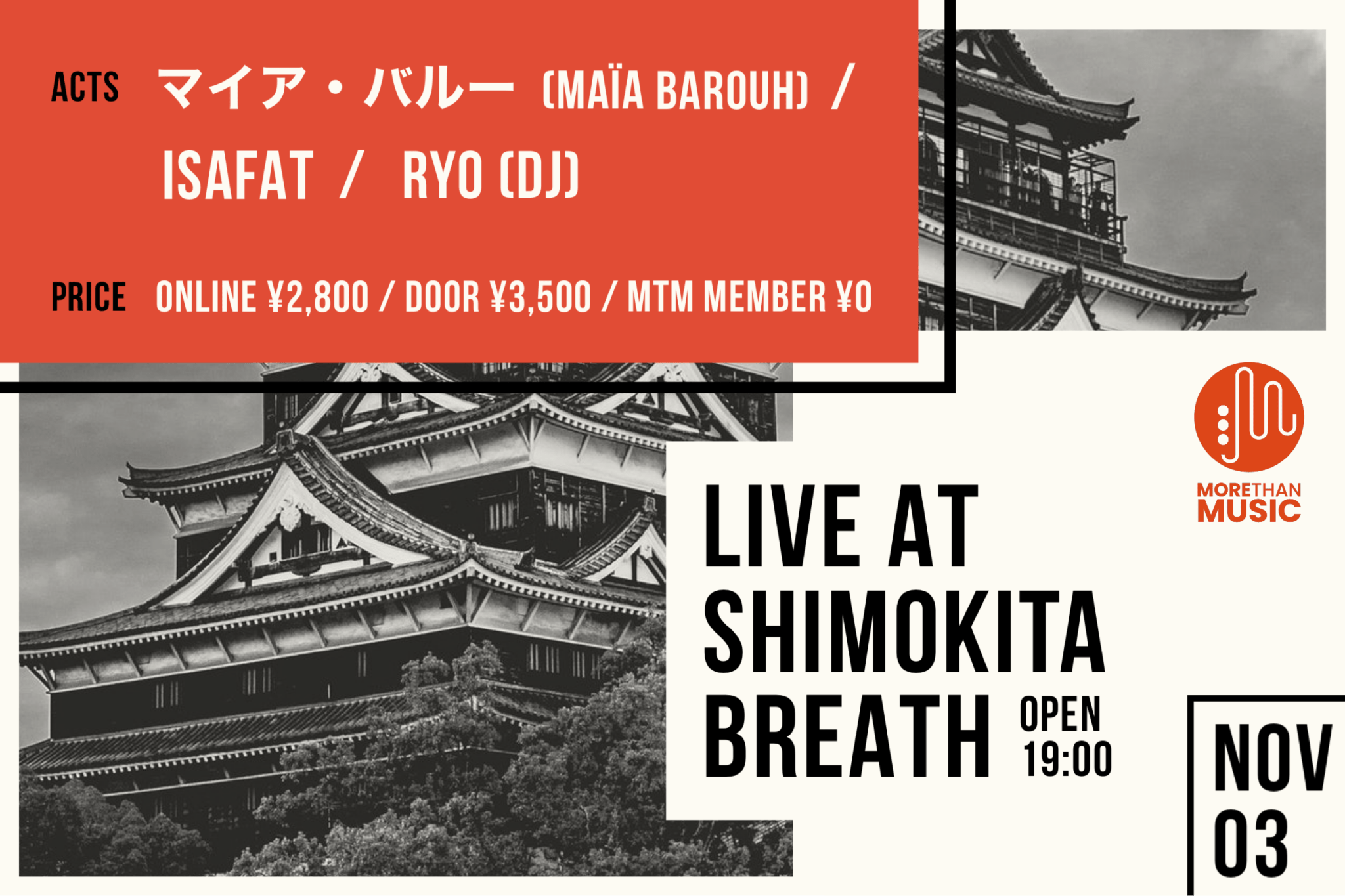 This event hosted by More Than Music brings together the vibe from all over the world at Breath in Shimokitazawa, a venue that sits at the heart of Tokyo music scene. Join the intimate stage with French and Japanese acts coming together.