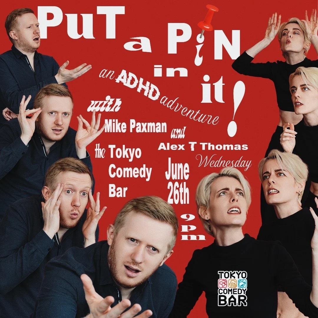 Hosted at the Tokyo Comedy Bar in Shibuya, comedians Mike Paxman and Alex T. Thomas embark on a wild, ADHD-fueled adventure to answer audience questions, with help from a whiteboard master tracking their every unhinged thought.