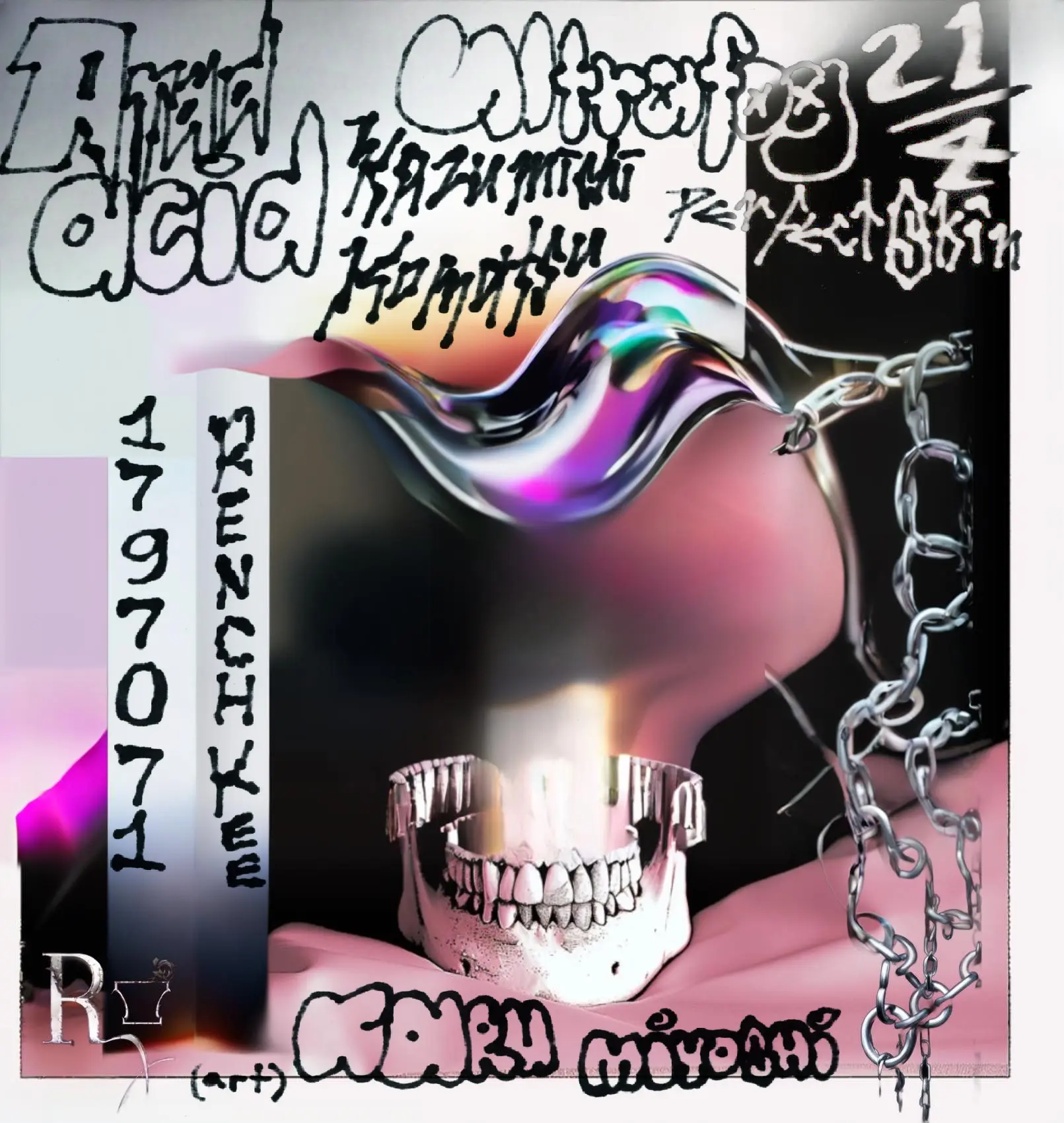 The event marks Arad Acid’s (Berlin, 3XL, Motion Ward) debut Japan performance, alongside local artists Kazumichi Komatsu, 1797071 and Ultrafog. Descending the stairs leading to the basement will reveal a surreal space with hanging jeans, handmade furniture and robotic sculptures.
