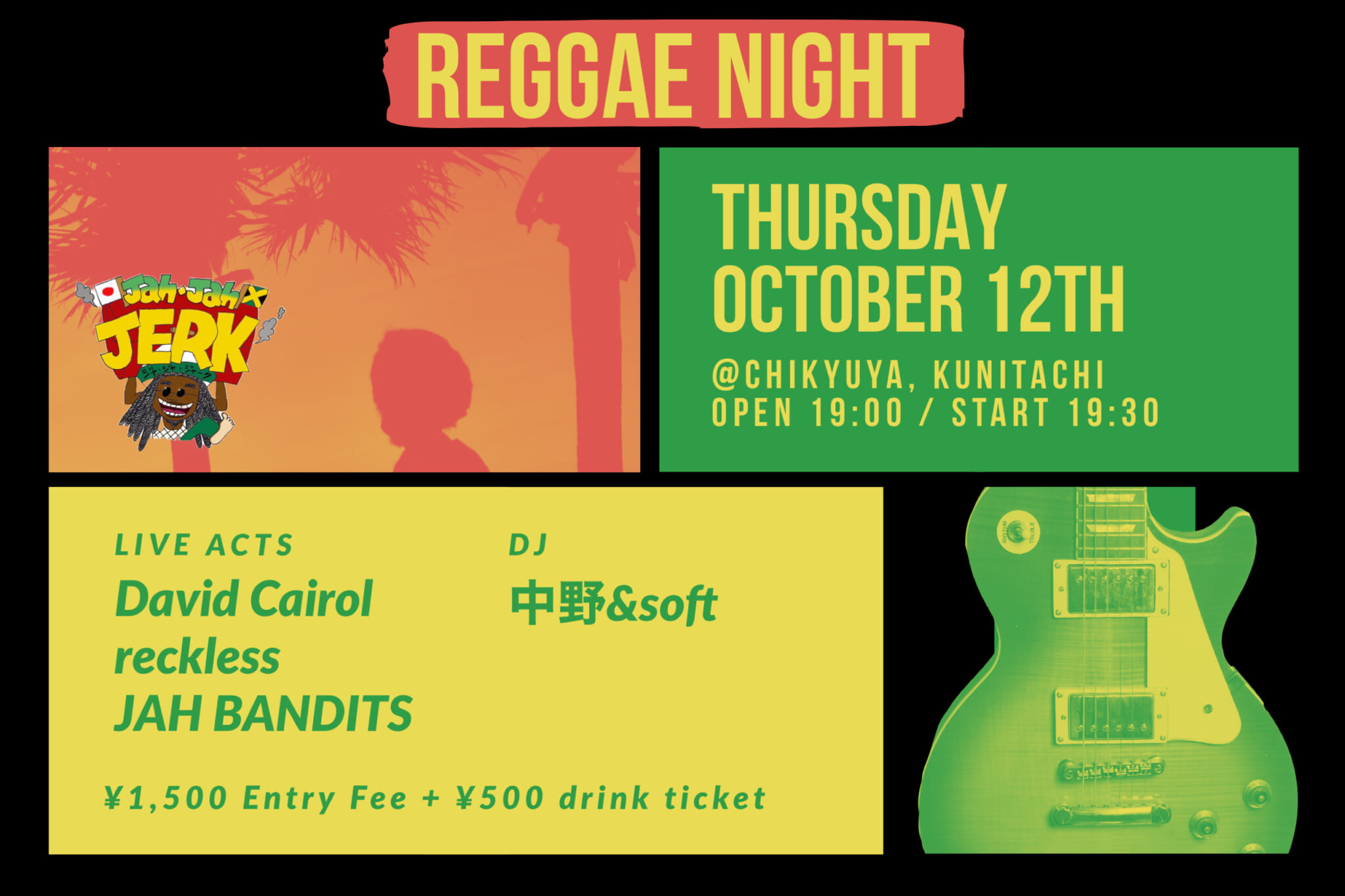 At Chikyu-ya, they host reggae sessions every first Tuesday of the month. This time around, More Than Music collaborated with the venue and invited David Cairol from France. There is going to be special food served by Jah Jah Jerk, who serves delicious chicken made with sauces sent all the way from Jamaica from his mother.