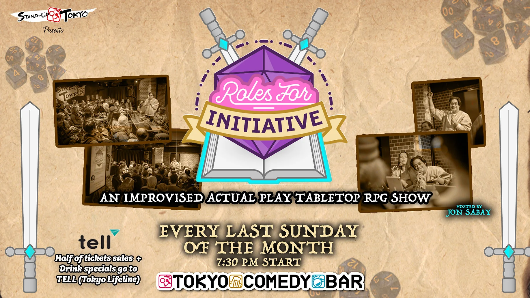 Note that half the ticket and drink specials sales will be donated to TELL (Tokyo Lifeline).