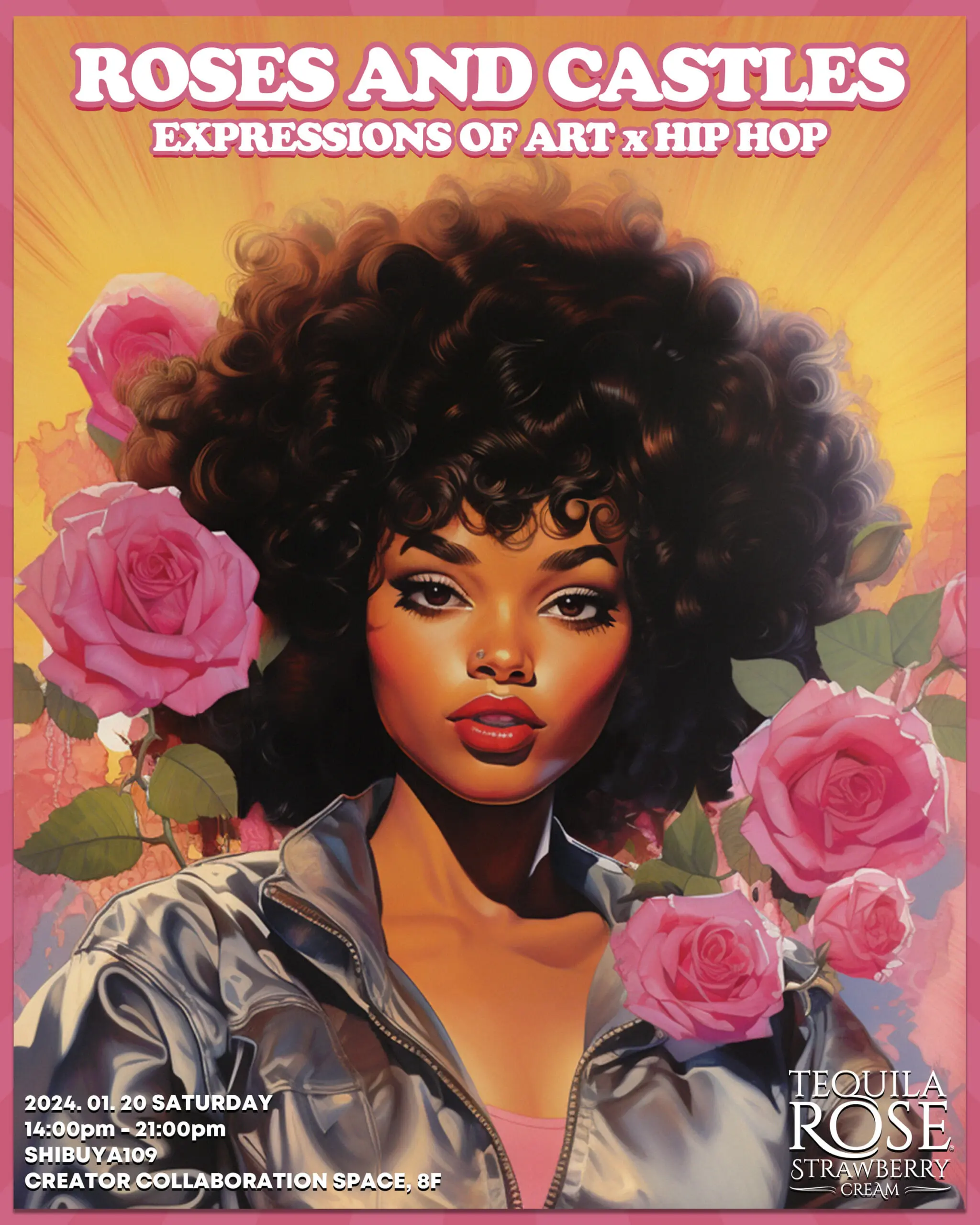 In celebration of the 50th anniversary of hip-hop as a groundbreaking music genre, art movement and subculture, Roses and Castles have structured their next event as a curated exhibition by distinguished Tokyo-based artists, showcasing their expressions of hip-hop-themed work, complemented by music by exceptional DJs and guests.