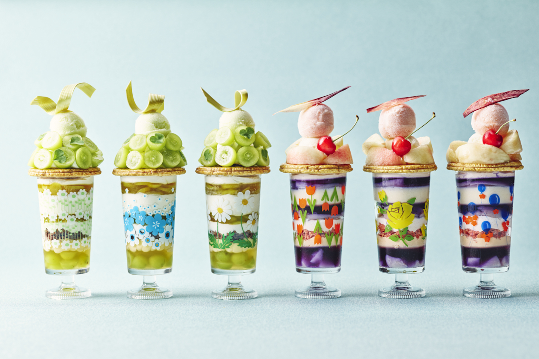 Six cute and colorful glasses of elegant fragrant tea and two types of summer fruit parfaits will be on offer at the Strings by Intercontinental Tokyo. Both nostalgic yet novel, the parfaits are served in a Showa Era Adelia Retro glass. You can pair it with a mocktail for a full experience.