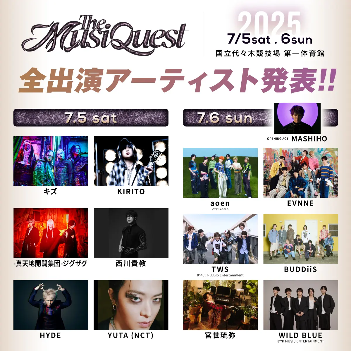 The MusiQuest is all about musical diversity and discovery, spotlighting new sounds alongside big names. For its 2025 edition, the festival moves to Yoyogi 1st National Gymnasium in Tokyo and brings a high-energy lineup featuring Hyde, Yuta from K-pop group NCT, the theatrical visual-kei rock band Shintenchi Kaibyaku Shudan: Zigzag and rising Korean boy group TWS. Expect a blend of J-rock, K-pop and new talent.