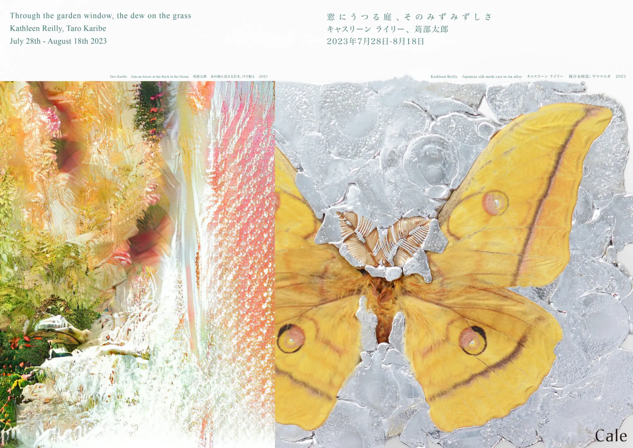 Cale/Field Sewing Tokyo will hold an exhibition by Kathleen Reilly and Taro Karibe from July 28 to August 18, 2023. The works of both Kathleen Reilly and Taro Karibe use different angles of perspective to explore the nature of the realm of the self and others. In exploring the overlap between Reilly’s act of transforming the artist’s inner experience into poetry and sculptures and Karibe’s act of generating landscape photography through communication with AI, the two artists, in searching through conversations, identified the story of “The Butterfly Dream,” said to be seen by the Chinese philosopher Zhuangzi, as a shared image. Understanding the ephemeral nature of approaching others, which can only be achieved by constant observation, both artists attempt to penetrate through some acts of destruction.