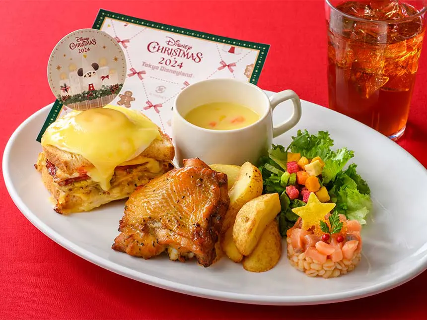 Various restaurants and food stands around the park will have special menus inspired by the season. The special set from Plaza Pavilion Restaurant will have a pastrami beef and egg hot sandwich, corn chowder, salad, chicken on the bone, french fries and an orzo salmon tartare. The seasonal sandwich at Sweetheart Cafe has ham, egg and pasta salad between red-colored buns. Grandma Sarah’s Kitchen has an omurice with fried shrimp and shrimp tomato cream sauce. The set even comes with a dessert: a chocolate walnut cake with strawberry sauce. The Blue Bayou Restaurant, which sits inside of the Pirates of the Caribbean attraction, has a Christmas course menu with your choice of either a lobster gumbo or seafood appetizer, a roast beef entree with either ragout or a mushroom sauce, and a strawberry verrine or beignet parfait for dessert.