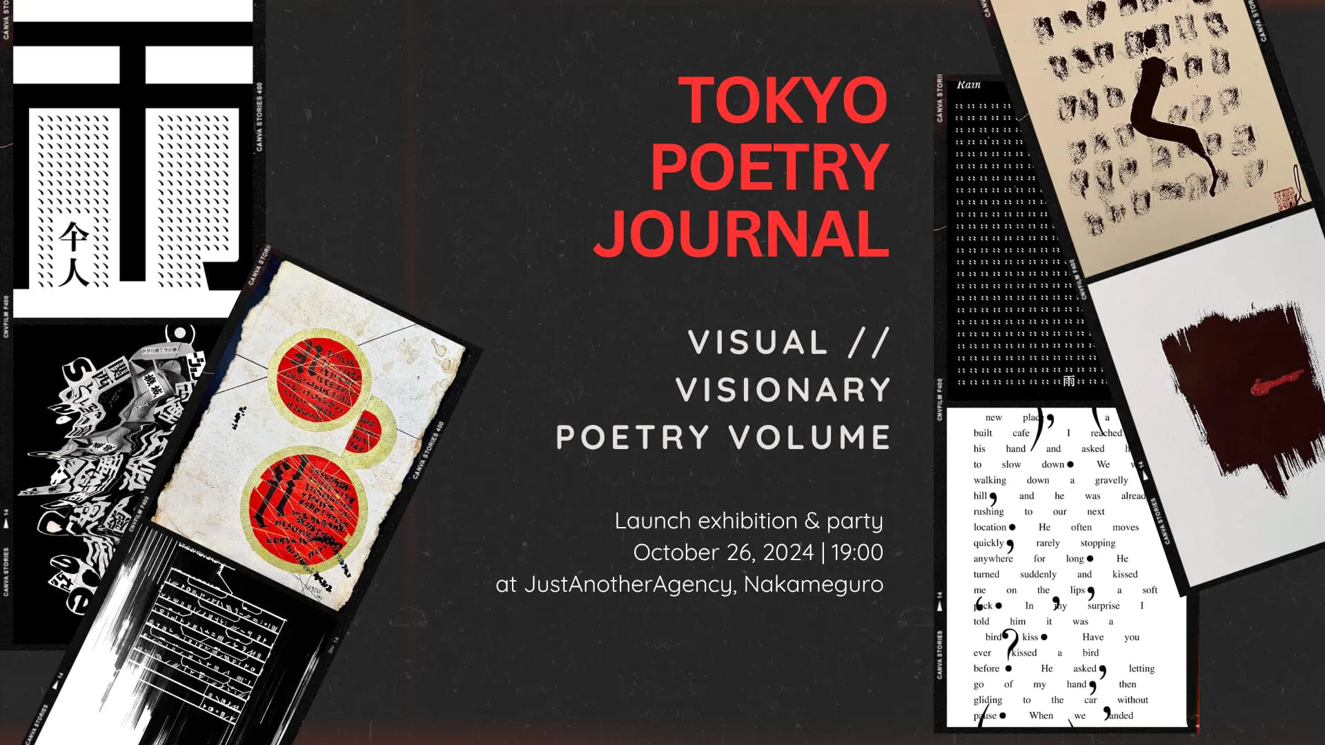 The book will be launched with an exhibition of visual poems, featuring live calligraphy painting and poetry performances on October 26, at JustAnotherAgency bar in Nakameguro. It’s an opportunity to party with poets until the last train.