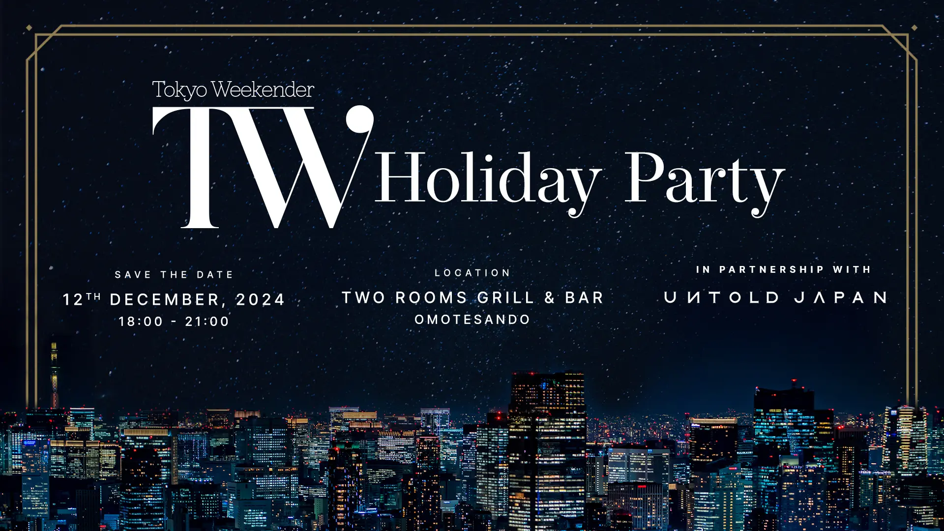 On December 12, from 6 to 9 p.m., we’ll be getting festive in the heart of Omotesando at the gorgeous Two Rooms. Come meet the TW team, chat with the creative folks of Tokyo and grab a copy of Tokyo Weekender to take home with you.