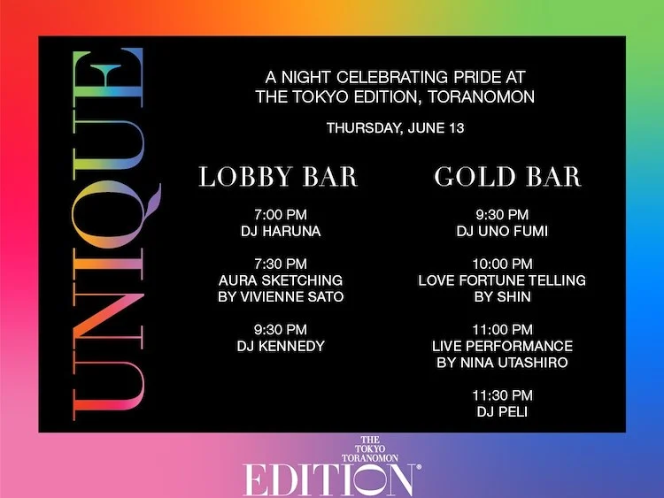 On Thursday, June 13, The Tokyo Edition, Toranomon will be hosting Unique, a night celebrating Pride with special treats and activities.