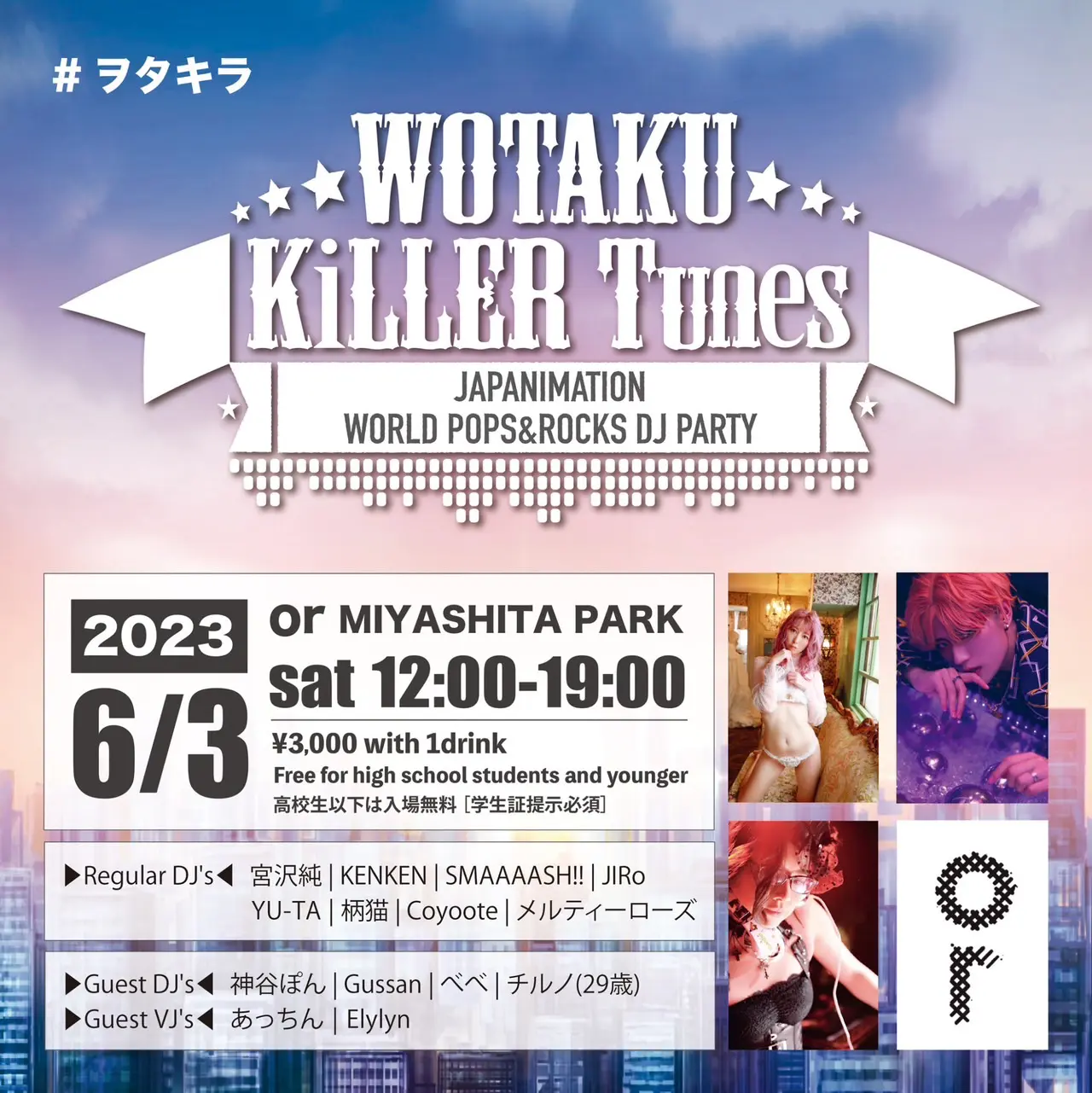 Starting in 2014, Wotaku Killer Tunes is a well-known daytime party focussing on anime hits and city pop music, some of the most beloved Japanese music worldwide. It has a mix of regular DJs and guest DJs, as well as VJs adding visuals to the sounds. The result is always a lively floor where anyone can dance and have fun.