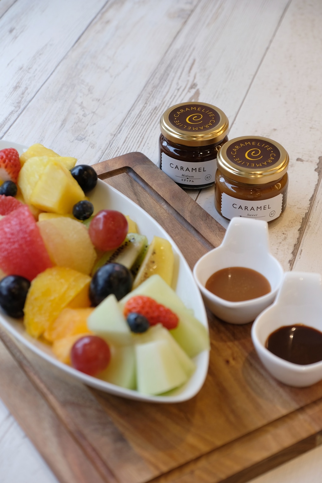 There are also a few ways to enjoy the varieties of spreads if you want a little snack. Particularly great when sharing amongst a group of friends or family, a platter of fruits is the simplest combination to enjoy their basic caramel. Pick your favorite among the range, from bitter to sweet, and dip bananas, grapes, cantaloupe and even grapefruit. While I didn’t try it on site, I suspect that a drip of Sweet of Butter caramel on a slice of fruit cake could also be a smart way to elevate the dessert if need be.
