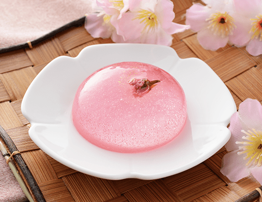 Topped with fresh whipped cream and a dainty salt-pickled sakura blossom, this two-layered sakura jelly and sakura-flavored blancmange (similar to pannacotta) dessert is a sweet treat as delicious as it is beautiful.