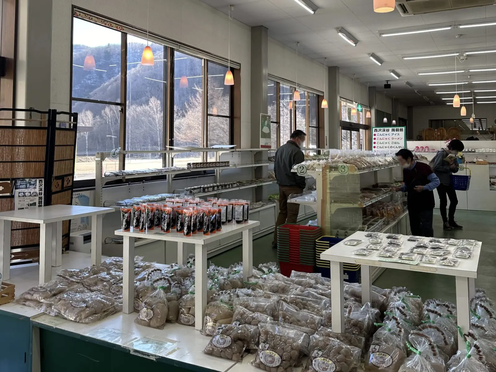 One spring day, my friend and I took a trip to Yamanashi Prefecture hoping to go on a hike, only to arrive and find out the trail wasn’t open due to it being off season. Defeated and hungry, we made our way to the closest form of civilisation— which happened to be a konjac specialty store called Konnyaku-kan. Located by the roadside in the middle of nowhere stood Konnyaku-kan; a giant complex with an open layout that was one part café and nine parts store. Here, you could find all things konjac: jerky, sashimi, crisps, mochi, red bean yokan (Japanese confectionery), pickled gobo (burdock root) wrapped in konjac, the list was endless. For visitors stopping by for lunch, the café sold a variety of konjac ramen and soba lunch sets. For customers who purchase konjac products off the shelves, the store owners guide you to a seating area and present you with a platter of tiny konjac side-dishes and an unlimited supply of hot tea. Some of the dishes included slices of konjac served in yuzu, dashi, mustard and konjac warabimochi.