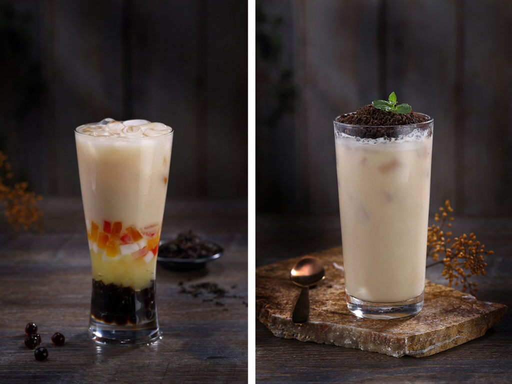 Some of THE ALLEY XIEJIAOXIANG’s most popular drinks include its assam-based three-texture milk tea (medium size ¥650), its bonsai milk tea, which is topped with chocolate cups (medium size ¥600) and its Aurora and Sunrise ice teas (¥700 each), with their blend of unique colors.