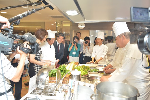 The Bandai Atami Onsen Hotel Shikisai Ichiriki represented Eastern Japan with a fatty skilfish, a rare treat found in the depths of the sea, along with a stuffed lemon from Fukushima, which was designed to attract more tourists to the affected region. The Kyushu/Okinawa representatives Hotel & Residence Nanshukan whipped up a shabu-shabu with their Kagoshima black pork specialty, along with stewed bonito, while the Hotel Il Palazzo kept it lighter with a vegetable salad and colorful, nutrient-packed soy smoothie.