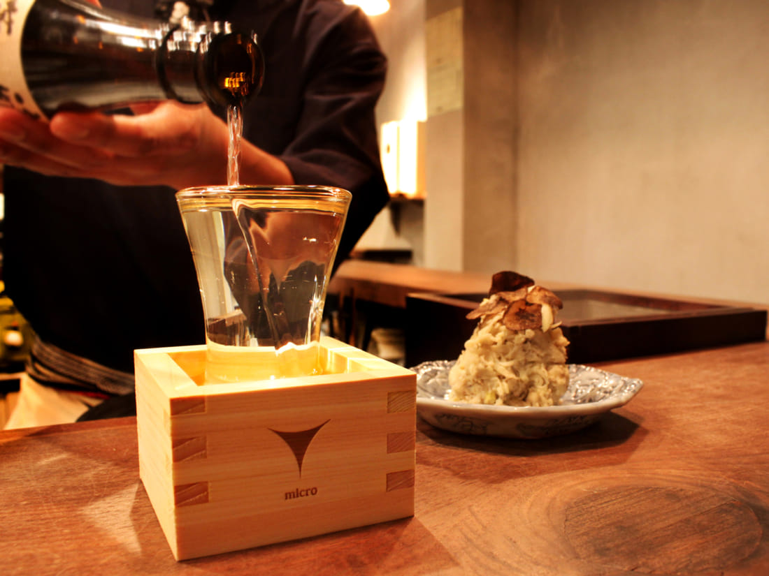 The bar itself is standing room only with enough space for around 10-15 people. There’s a wide selection of beverages including beer, rum, gin, Japanese sake, shochu, fruit wine, and several non-alcoholic drinks. The local craft and matcha beer, in particular, come highly recommended. Though fairly small, the food options are also delightful, especially the truffle potato salad, cured mackerel with avocado, and the wild boar roast ham.