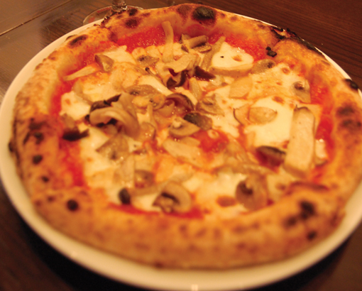 From the menu we chose the handmade seasonal mushroom pizza (¥1,200). The dough was rustic and the toppings delicious; the extra attention to detail showed clearly. We also ordered a marinara pizza (¥950) with anchovies, garlic and fresh cherry tomatoes. To complement these we went with a couple of glasses of chardonnay. The chilled white wine went perfectly with the light Italian food.