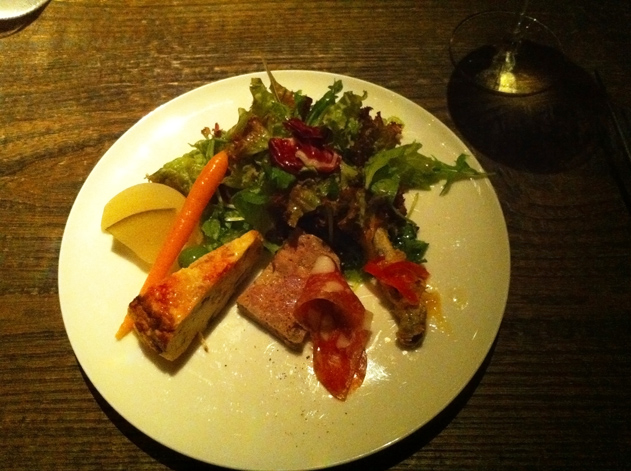 We decided to order the prix fixe menu (¥4,000), which includes a choice of appetizer, pasta, main and dessert. Beware that certain options require an additional charge, so it is still possible that the bill ends up being more than the fixed price would have you believe. We started off with an appetizer selection that included a slice of Spanish omelet, salad, pickles, and various meats and pâtés. The smoked salmon started consisted of a large filet (rather than small shavings) of salmon, and was served with cream cheese, olives, shaved red onions,and a fresh green salad with a light vinaigrette dressing.