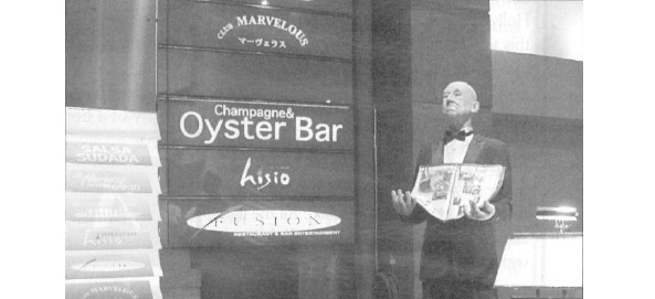 Went back a few weeks later with my secretary Kumiko for a real sit-down, and found they’d put in an oyster bar. I ain’t used to eating oysters in places what don’t got pitchers of beer on the bar and sawdust on the floor. But we ordered a few anyway, two raw Hokkaido (¥550 each)—huge, fat and round like golf balls, with hardly no mantle—and two cooked Rockefeller (¥450 each)—rich, and garlicky.