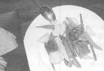 I make a clean break of them, but by that time I’d gotten a powerful hankering for a ‘burger and was ready to jump into the closest place serving beef. I didn’t walk but ten paces when I see the ghost of Alfred Hitchcock holding out a menu to me. Turned out to be one a them statues from some wax museum, but my eyes were on the page, scouting for ‘burgers.