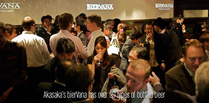 “We are a popular stop for avid beer drinkers,with a chilled wall featuring over 99 varieties of bottled beer from more than 60 countries, and 10 draught beers, including real-ale and cider. bierVana is one of Tokyo’s few true “bier” pubs, where you can have an informal drink and a bite in the bar area, or relax in our comfortable and plush seating area.”