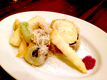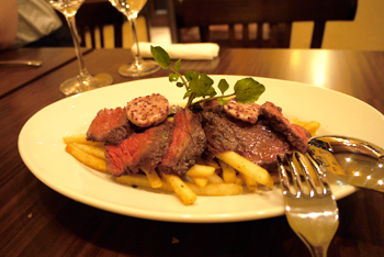 Our furnaces well and truly stoked, we ventured on to tempura-style vegetable fritters with a delicate sprinkle of cheese and pink wine-salt, followed by deliciously tender strips of beef steak with French-fried potatoes and homemade spiced butter, and would have quite happily continued ordering had it not been a ‘school night’ and clearly time to go home.