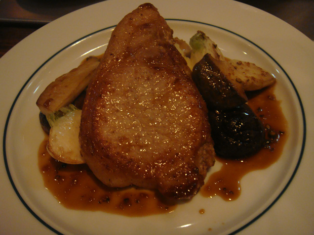 From the daily specials menu, which changes frequently, we ordered the fish and chips. Tender white fish was battered in a whispery light, crunchy coating and served with malt vinegar and Thai chili dipping sauce. While the fish was perfectly fried and tasty, being American, I longed for tartar sauce. The roast yamayuri pork with green pepper sauce was a generous, thick-cut juicy pork chop with a delicious, slightly sweet green pepper reduction. Served with roasted mushrooms, baby turnips and mashed potatoes, the dish did justice to the term ‘meat and potatoes.’