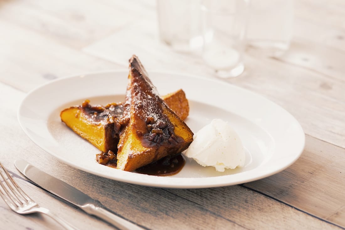 When we visited the new Harajuku branch, we opted for the Pecan Pie French Toast with bourbon, molasses and toasted pecans. The plate featured two slices of fluffy French toast, drizzled with a dark sugary (but not overpowering) syrup, topped with a dollop of homemade whipped cream and a sprinkling of powdered sugar. It’s a simple recipe but the airy texture of the French toast completely won us over. Also, the hint of bourbon married with sugar offers a tantalizing twist — it’s a perfect complement to the whipped cream.