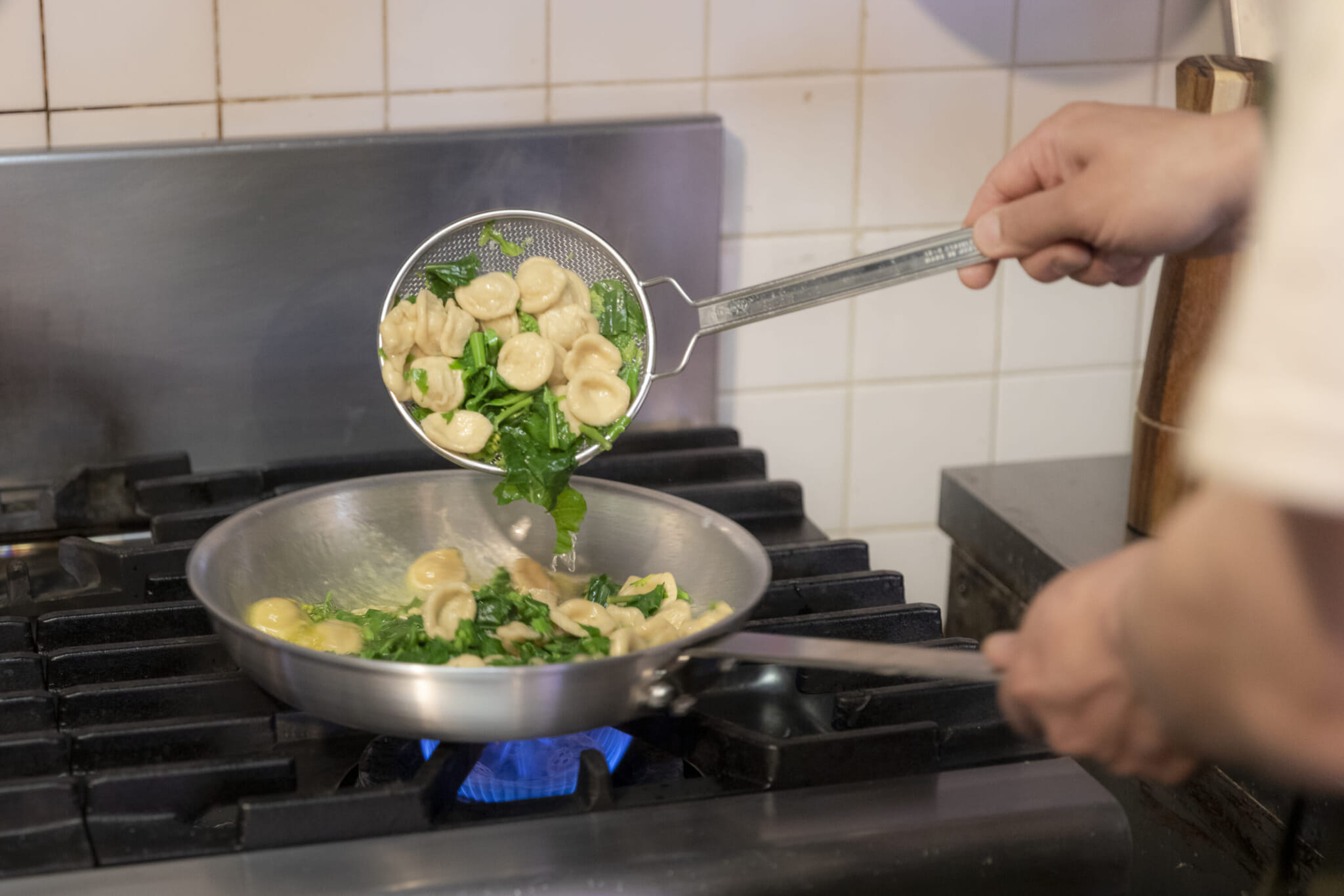 “Italians love their land and environment more than Japanese people,” he says. “I worked at a one-Michelin-star restaurant called La Strega that was a little bit gastronomic, but the chef there invited me to his home, and I learned from his grandmother how to make orecchiette. She was 90 years old and gathered at the house with her friends. They made orecchiette together, and I joined them. It was such an amazing experience.”