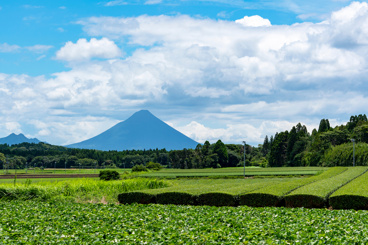 Tea plantation and Mt. Kaimondake in Kagoshima Prefecture