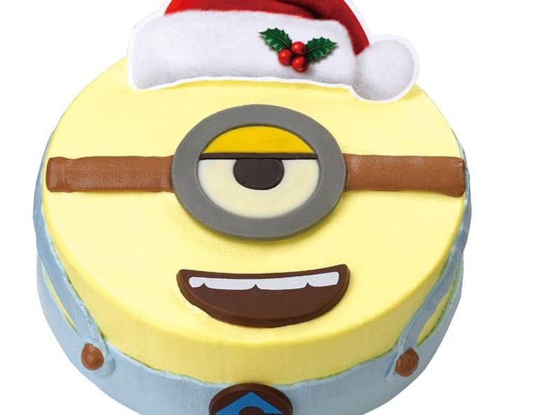 The whole face of a Minion turned into a popping shower and chocolate chip Christmas cake. The eyes, mouth, and Minions badge are all made of chocolate. A complimentary Minions calendar will be given to those who purchase or pre-order.
